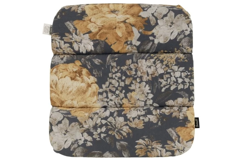 Een geel rozen dessin op een donker grijze achtergrond. De stof van het kussen bestaat uit een combinatie van katoen en polyester. Door deze combinatie is het kussen sterk, maar door het katoen toch ademend. Ook is het textiel makkelijk te reinigen!