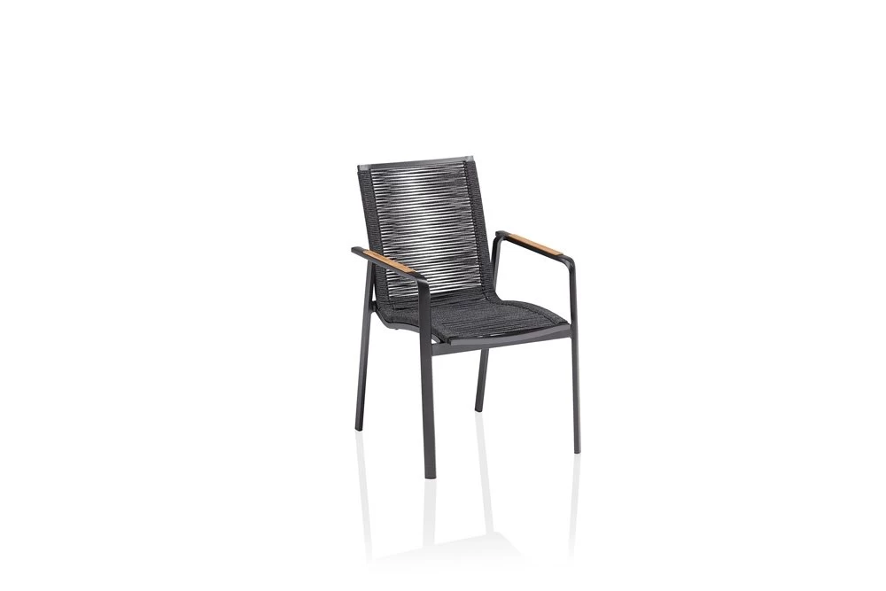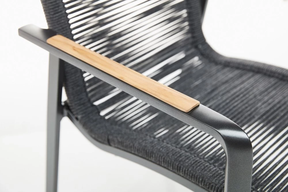 Bij de moderne stapelfauteuils van de serie DIAMOND in verschillende combinaties, vindt iedereen zijn lieverlingsfauteuil! Deze aluminium stapelfauteuil met rope bespanning in antraciet heeft een moderne uitstraling. De armleuningen van gecertificeerd teak zorgen voor een zinnelijk accent en brengen natuurlijkheid in de designgerichte serie. Zo wordt elke maaltijd buiten een speciale wellness-beleving!