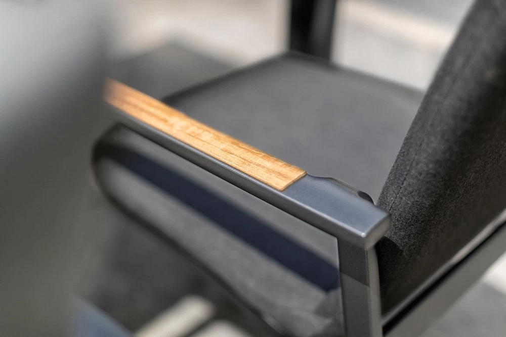 - Armleuningen van gecertificeerd teak voor een natuurlijke en elegante uitstraling