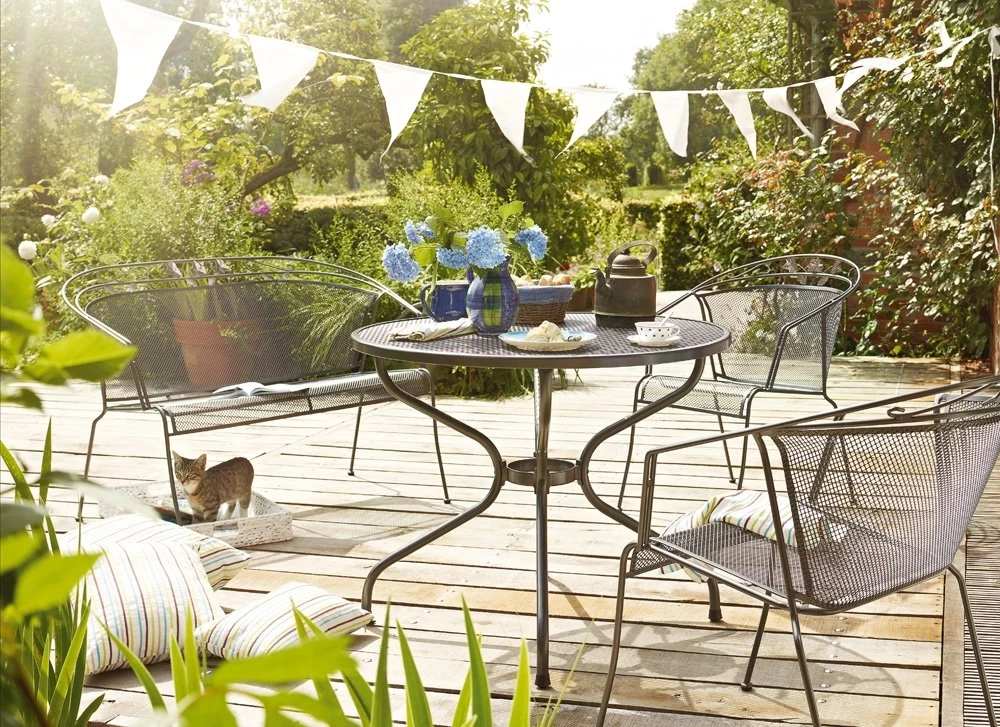 De stapelfauteuil TOLEDO van staal en strekmetaal vormt een hartelijk welkom voor een heerlijke zomerdag in de tuin. De idyllische look, het filigrane design en de fijne ornamenten zorgen voor een schilderachtige sfeer. Door het geoptimaliseerde zitcomfort kunt u met uw gasten een heerlijk aangename dag beleven.