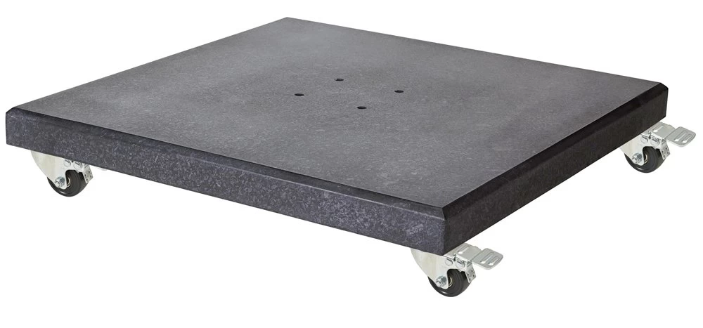 Voorzien van zwenkwielen met rem waardoor de parasolvoet makkelijk te verplaatsen is. Deze natuurstenen parasolvoet is vervaardigd van speciaal geselecteerd graniet en zwart gepolijst.Geschikt voor o.a. Platinum zweefparasols Challenger, Solarflex, Deltawing en Falcon.