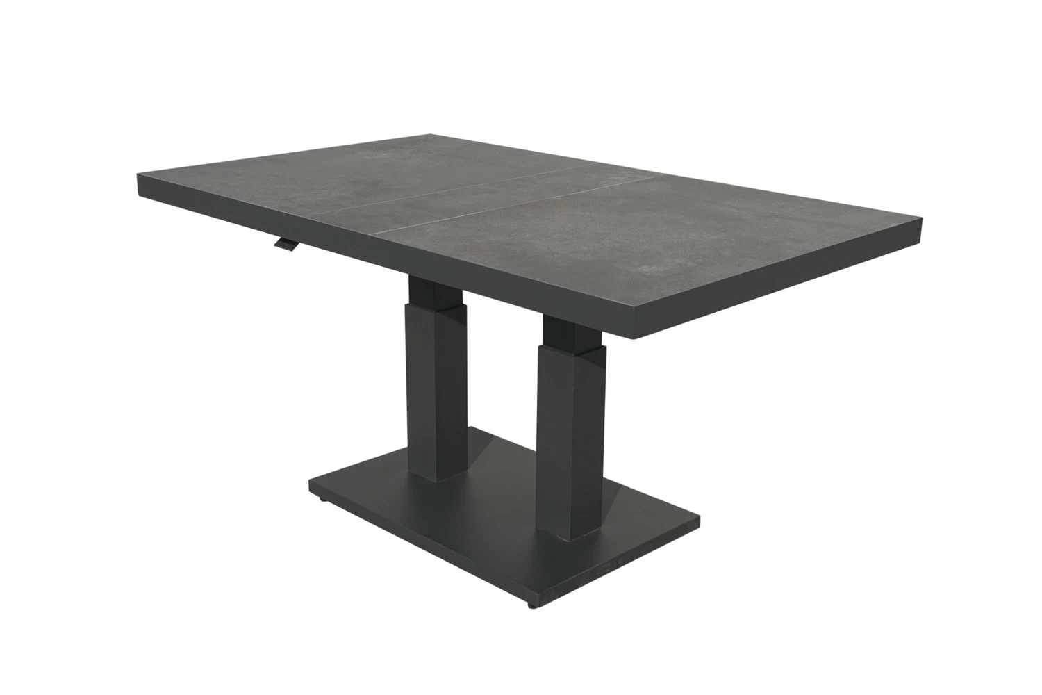Deze SOL tafel is in hoogte verstelbaar en dus ideaal om buiten te gebruiken als salon- of eettafel. Je hebt deze tafel in een handomdraai verhoogt of verlaagd en dat maakt deze tafel erg gebruiksvriendelijk. Het tafelblad is van keramiek en heeft een mooie steenlook.