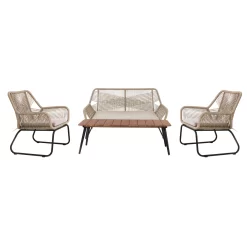 De “NAPOLI loungeset beige” is een moderne en eigentijdse loungeset van het merk Royal Seasons. De set wordt geleverd met 2 NAPOLI loungestoelen, een NAPOLI bank en een NAPOLI salontafel, allemaal in de kleur beige. De stoelen en bank hebben een stalen frame met beige gekleurd touw (5 mm dik) en de tafel heeft een stalen frame met een acacia houten tafelblad. Deze loungeset is een perfecte aanvulling op elke tuin of terras en biedt comfort en stijlvolle ontspanning voor minimaal 4 personen.