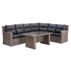 Royal Seasons heeft deze prachtige PLAYA loungeset uitgebracht! De kleur van deze tuinset is beige en het materiaal is wicker. De tafel heeft een glazen tafelblad. Uiteraard krijgt je bij de tuinset de bijbehorende kussens. Deze set is eventueel ook verder uit te breiden met een fauteuil uit de gelijknamige serie. Op alle producten van Royal Seasons zit 2 jaar garantie.